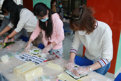 在這個(gè)屬于“女神”的節(jié)日里,工會(huì)組織女職工進(jìn)行了一場(chǎng)愜意又休閑的手工制作活動(dòng)。工作人員將事先準(zhǔn)備好的制作壽司、雪媚娘等食品所需要的原材料在職工食堂擺放整齊,讓大家親自動(dòng)手進(jìn)行制作。制作過程中,大家親密交談,協(xié)同制作,在忙碌的工作之余度過了一段難忘的午后時(shí)光。